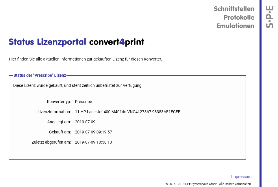 - Status einer Lizenz
